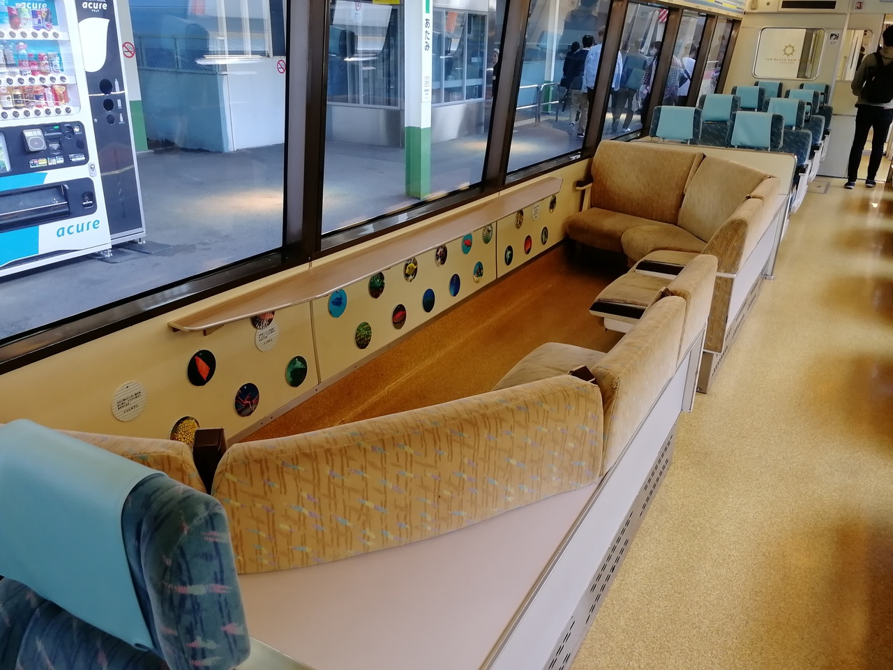 黒船列車の一部車両にはソファーもあります。また、海側には海を眺めることができるお座席もあってとっても快適です。