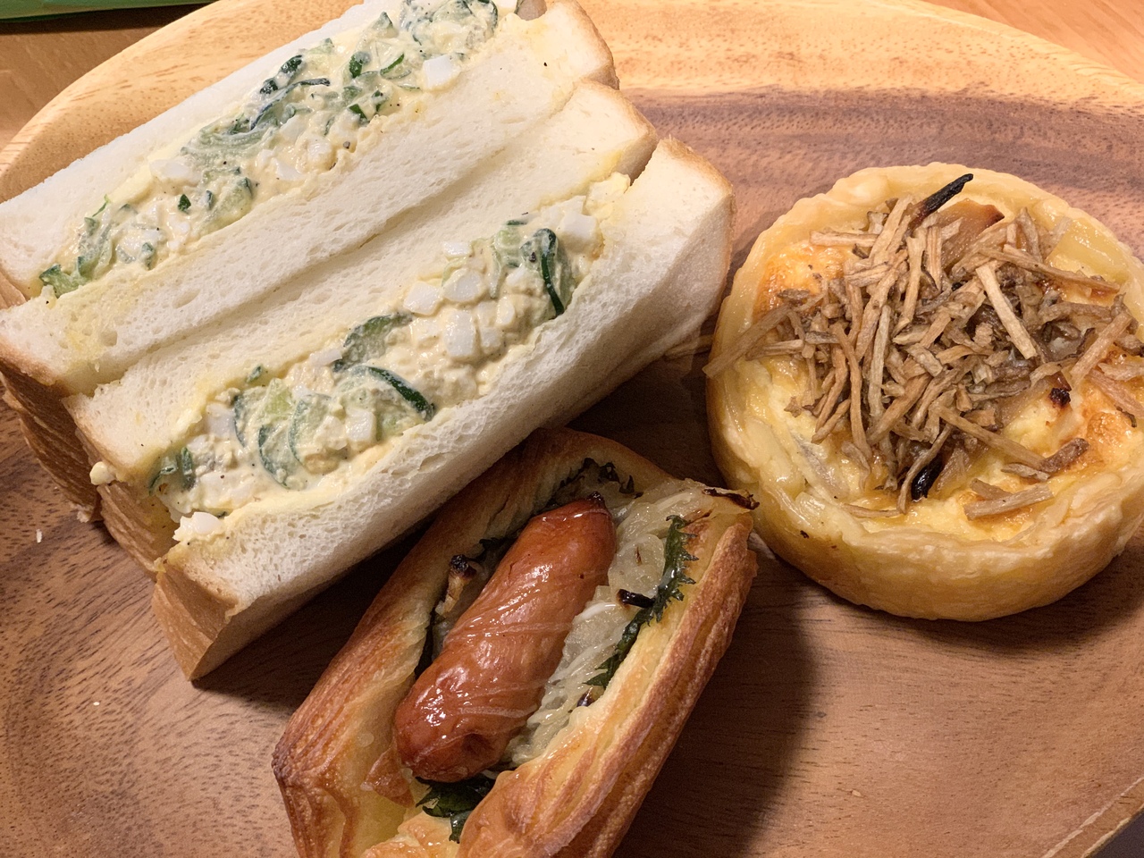 渋谷駅前、都バスのロ-タリ-側の宮益坂の角にあります。桜系のパンにつられて入りましたが、購入したのはシソウィンナー、春野菜のキッシュ(ゴボウ)、たまごサンドです。