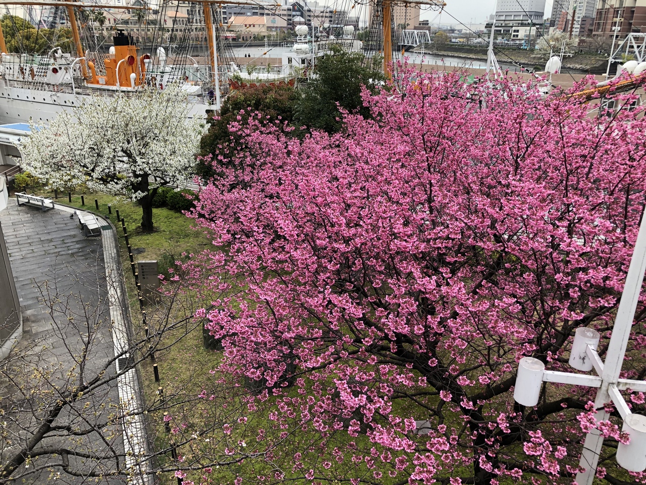 船の中を見学できたりします。この日は公園周辺に桜が咲いていて綺麗でした。