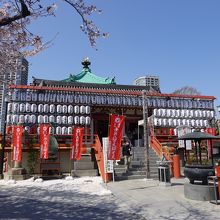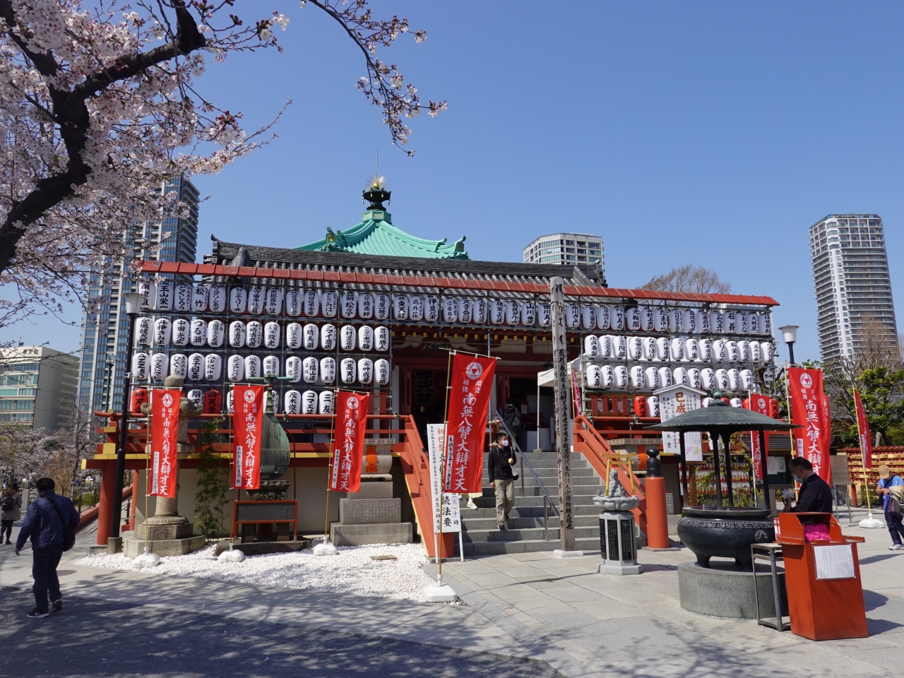 不忍池の真ん中にある弁天島にあります。3月の下旬に訪れました。新型コロナウイルスの影響で、花見が禁止されており、上野公園全体的に人は少なめでしたが、弁天島に至る参道沿いには屋台も出ており思った以上に活気がありました。池の外から眺める姿も良いですが、近くで見る姿もまた違った良さがありました。