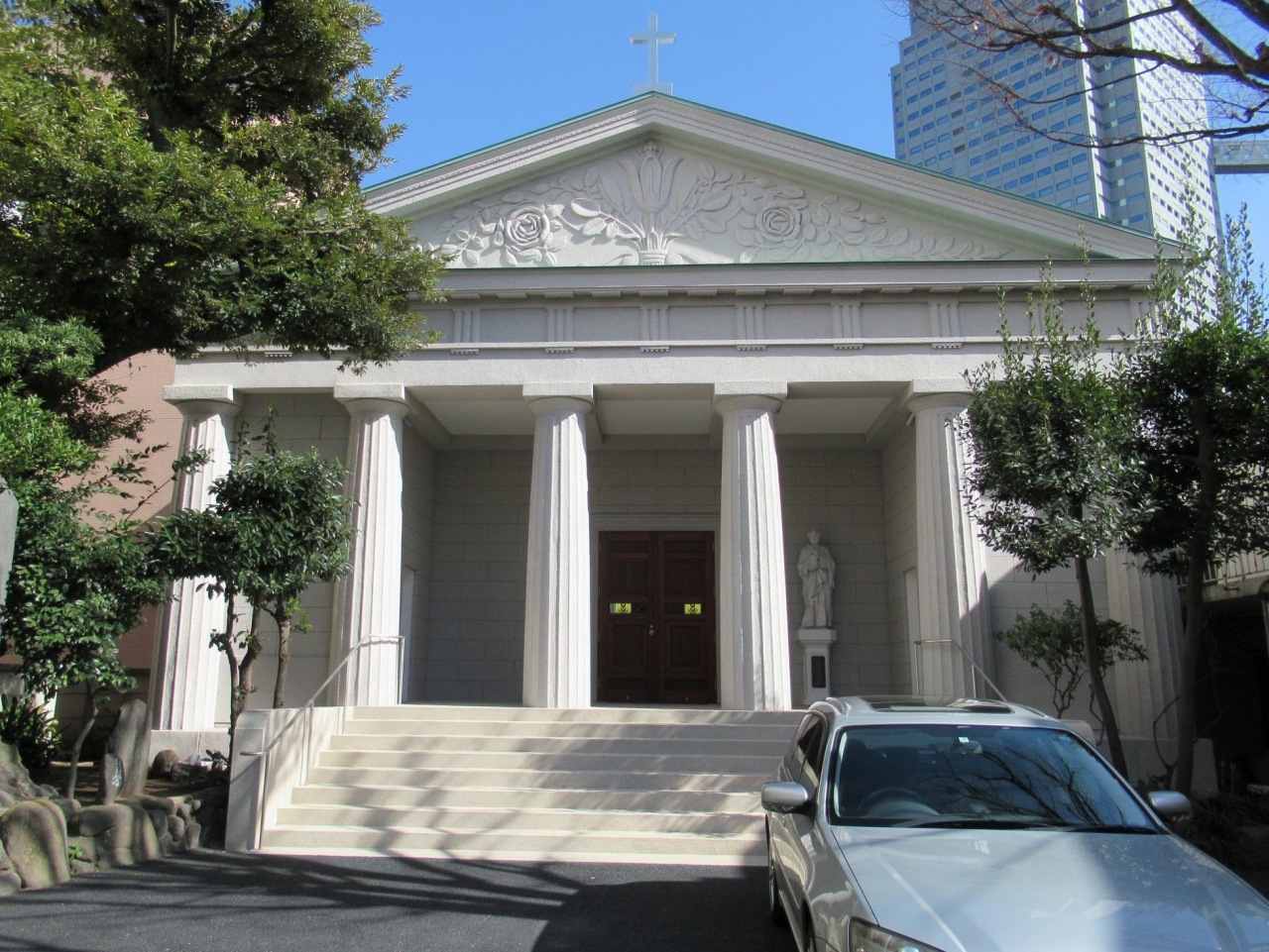 この教会は、明治4年 (1871) に開いた「稲荷橋教会」が前身とされ、明治11年 (1878) に、ここにゴシック様式の聖堂が献堂されたが関東大震災で焼失し、現在の聖堂が昭和2年 (1927) に再建された。