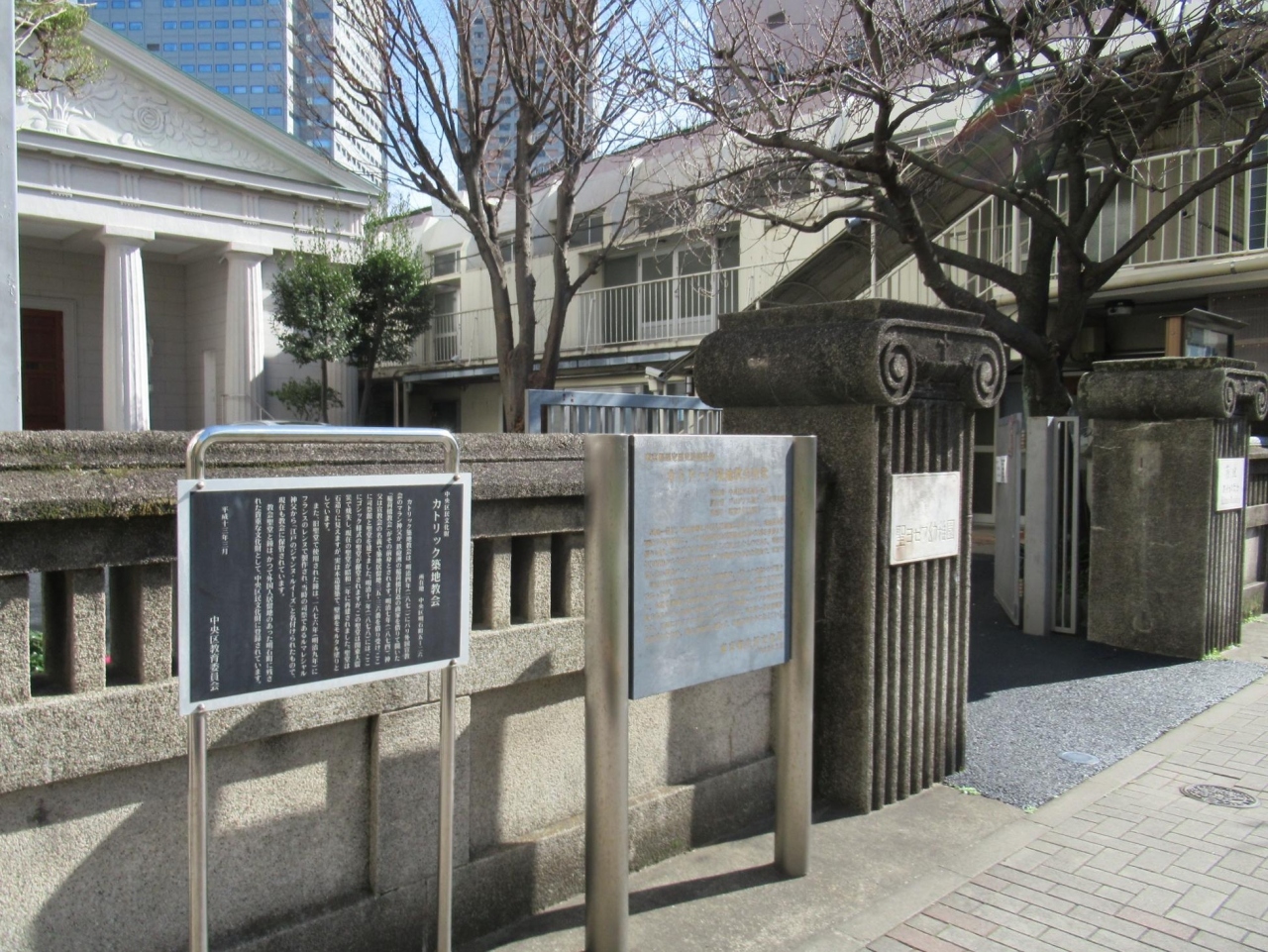門柱の左手にある「カトリック築地教会」の説明板を見ると、