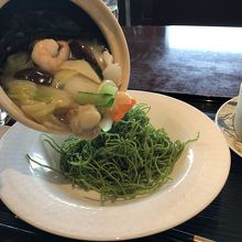 久しぶりに行ったら、春の翡翠麺のあんかけがあったのでつい頼んでしまいました。シーフードが沢山入っていて、非常にボリュームがあり良かったです。