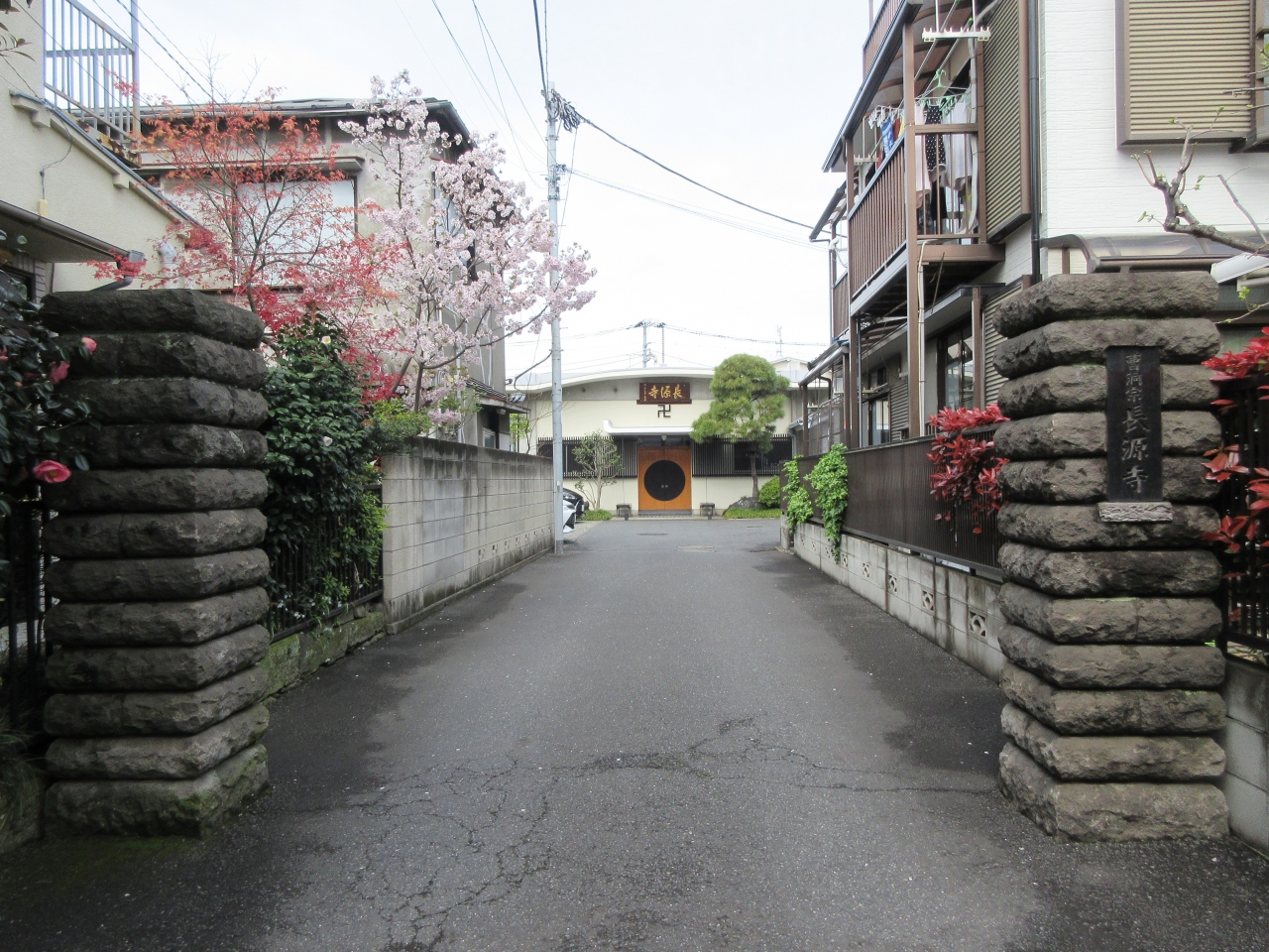 神楽坂から緩やかにのぼる朝日坂の上にいくつか寺院が建っています。その中の一つの曹洞宗寺院で1558年に創建し現在地に1616年に移りました。コンクリート造りの本堂は周りの住宅に溶け込んだ雰囲気の建物でした。しゃれた造りの本堂の扉は閉まっていました。扉前にベンチが両側にあり、本堂奥の墓地を訪れた人が休めるようになっていました。説明板はなく観光スポットとして訪れていいのかと迷ってしまう檀家のための寺院のようでした。