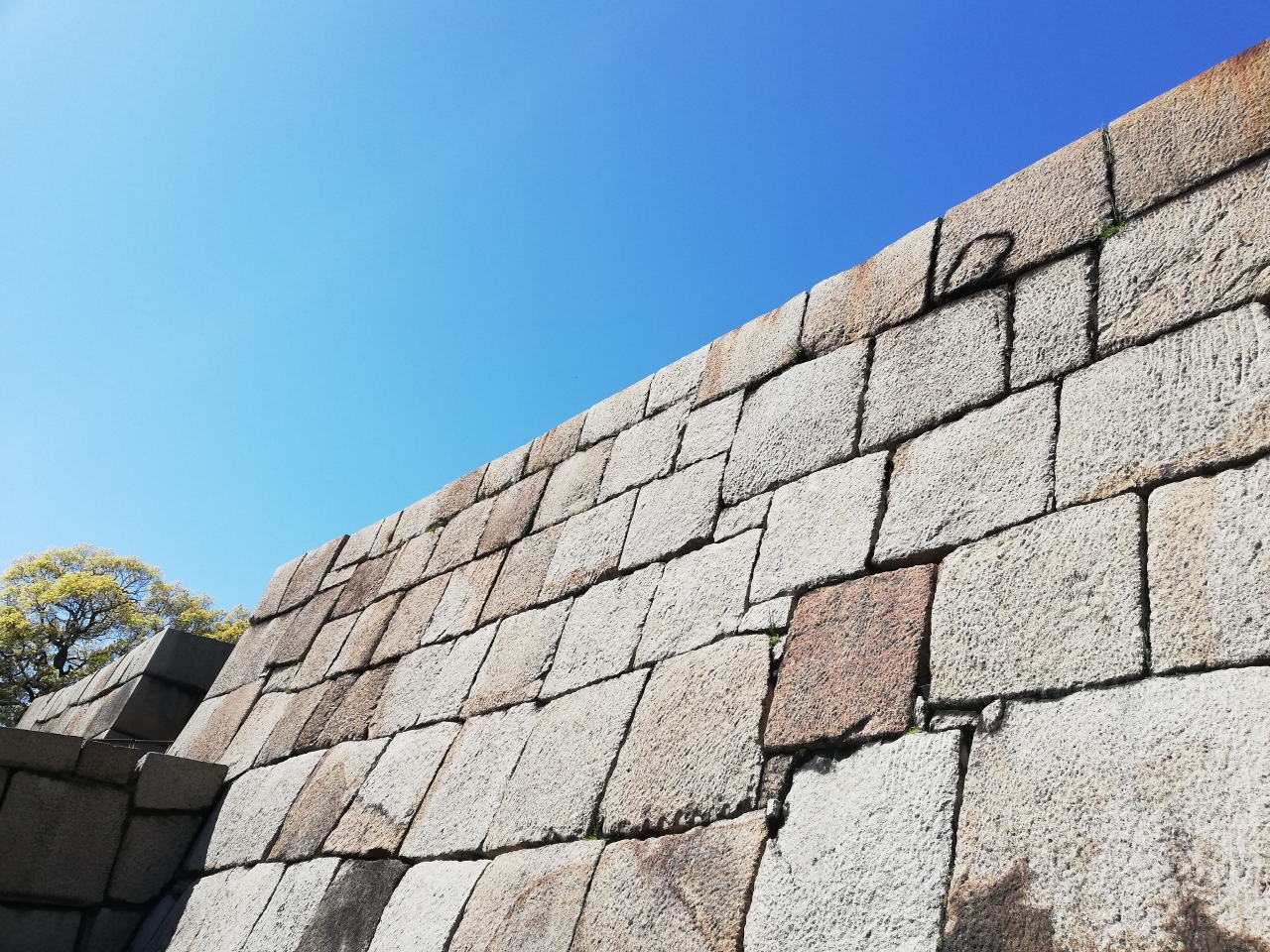 北桔橋門から東御苑に入るとすぐ天守台の石垣が見えます。