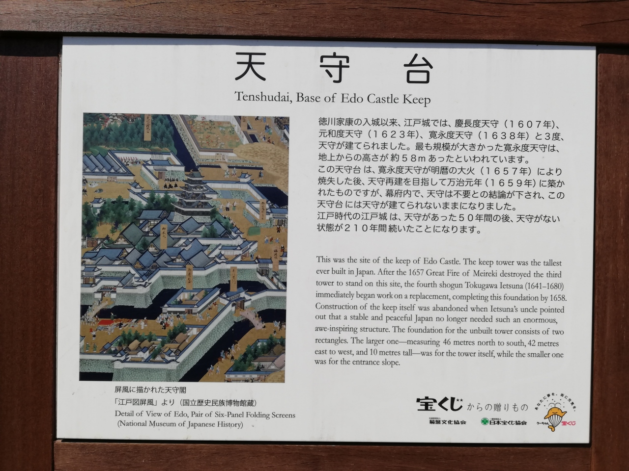 寛永の天守は、『江戸図屏風』などによれば屋根には金鯱をのせた5層6階(高さ58m)天守で、姫路城よりはるかに大きかったはず。