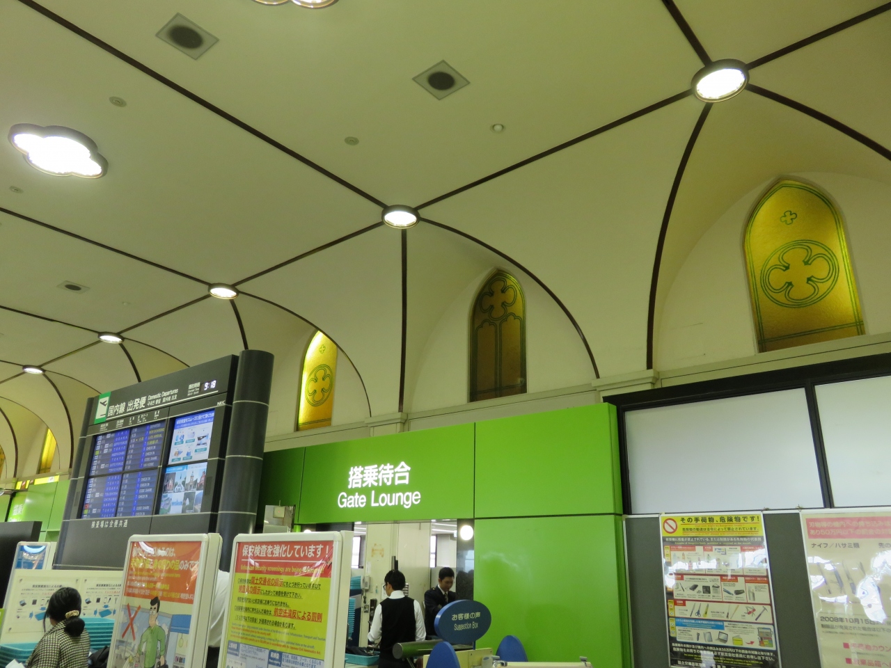 空港内の保安検査場が少なく、かなり行列ができていた印象がありました。空港内お土産ショップには名物カステラが試食できるコーナーもあり、豚角煮饅頭のテイクアウトのおみせなどもありました。