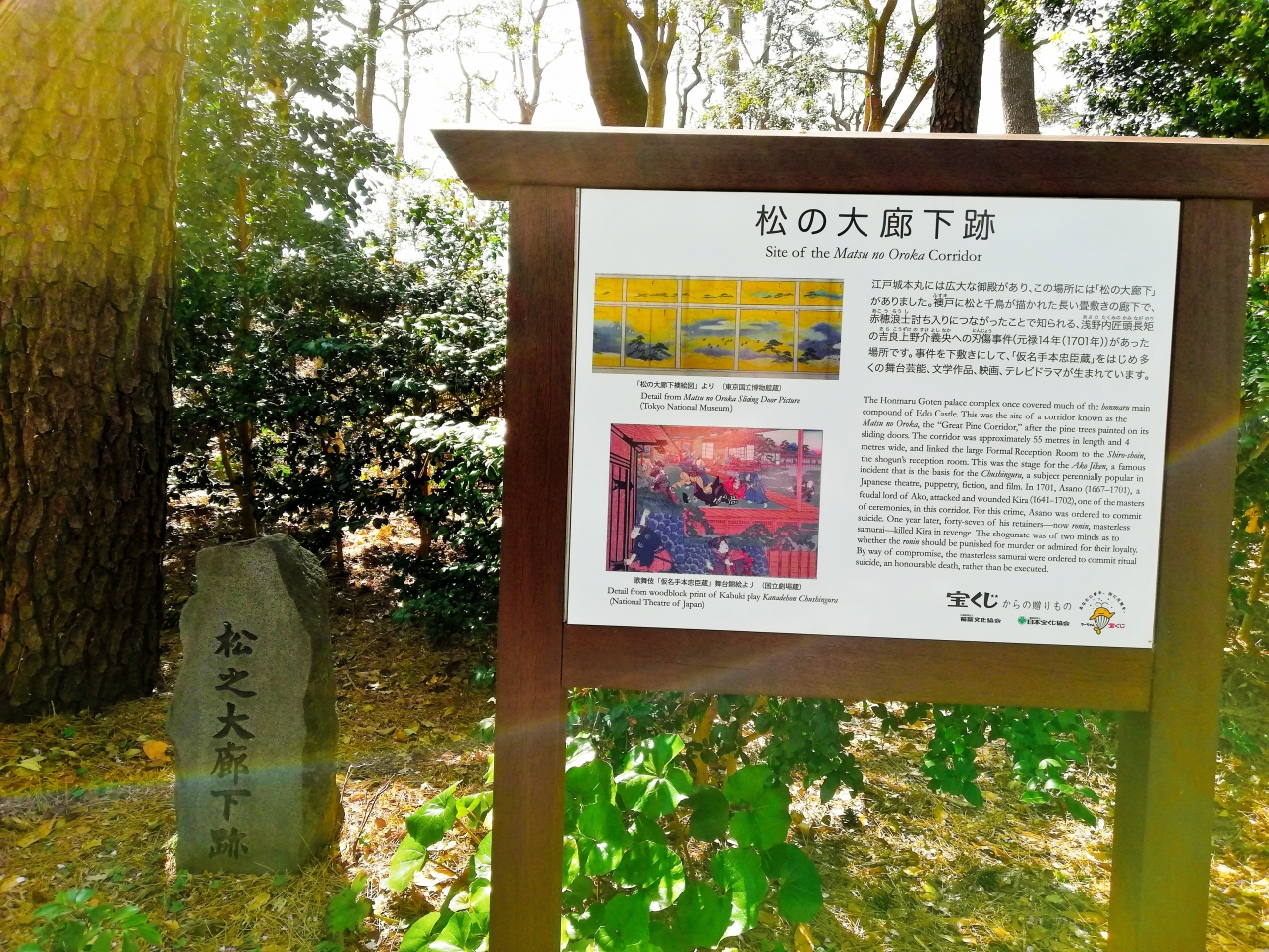 赤穂浪士の忠臣蔵の話は有名なので、『松之大廊下跡』の碑前を通りかかった時に、オオ~(゚∀゚)ここが…と立ち止まり、写真を撮りました。