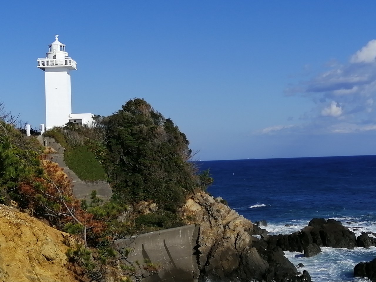 あのりふぐで有名な安乗埼に建つ、真っ白で四角形の灯台です。