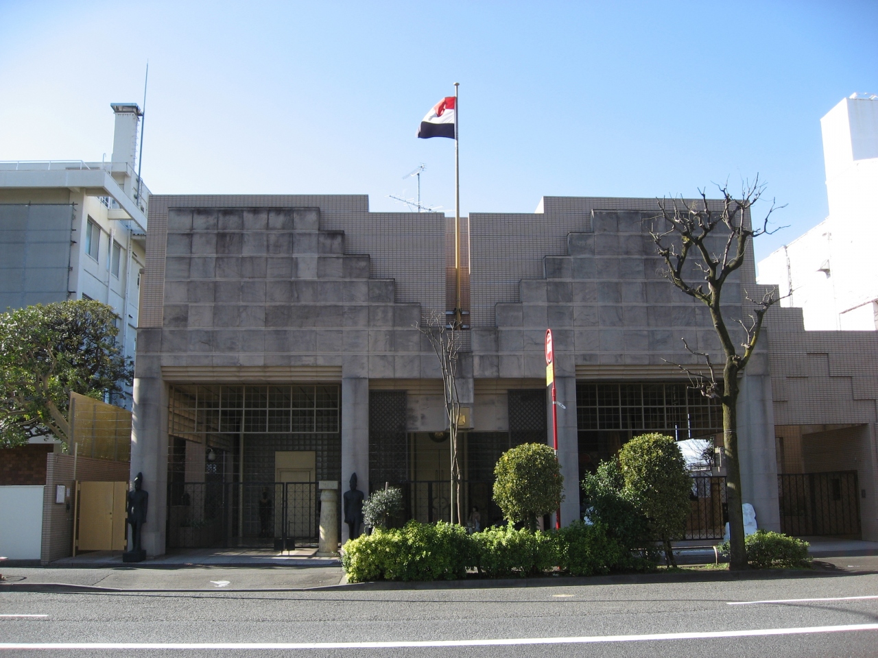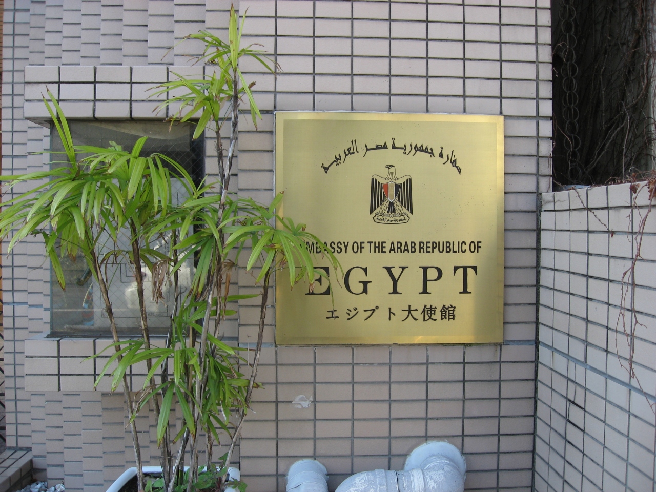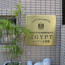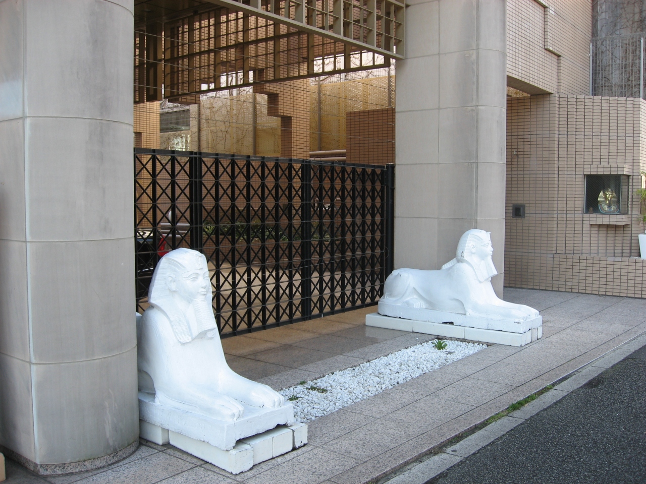 入口にスフィンクスがいて一目でエジプト大使館と分かります。