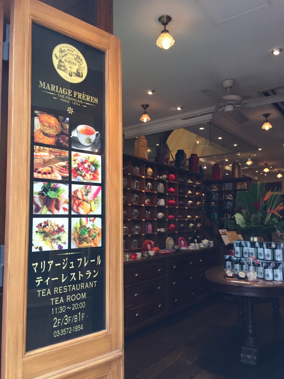 紅茶専門店のマリアージュフレール銀座本店です。マリアージュフレールさんはデパートにも入ってるのですが、路面店のこちらの方が断然テンションが上がります。2階のレストランはすごく落ち着いた雰囲気で大好きです。