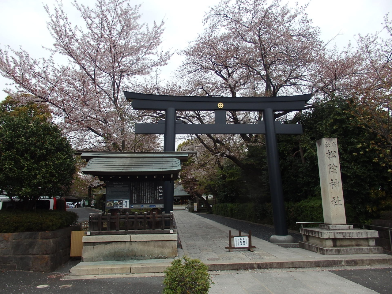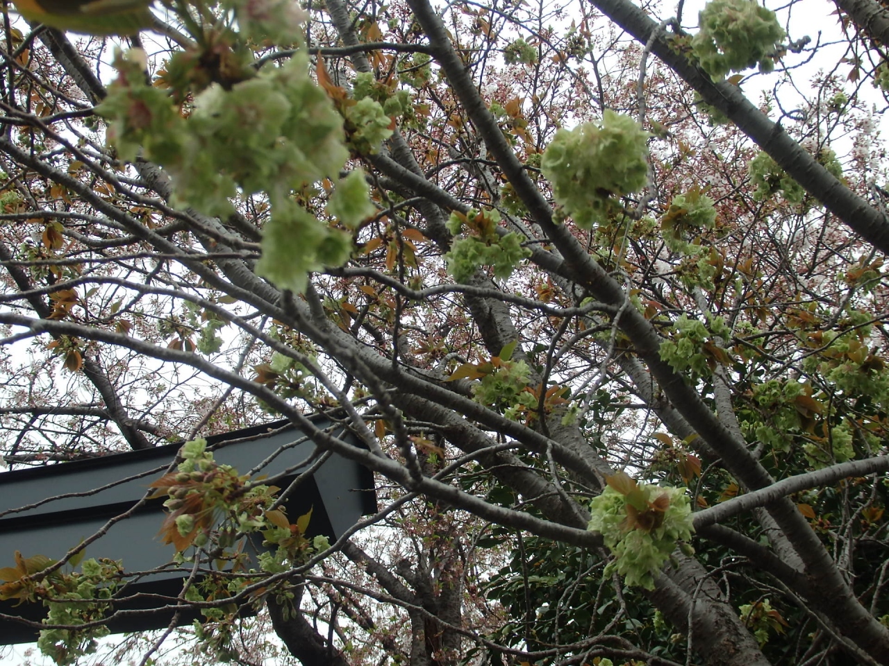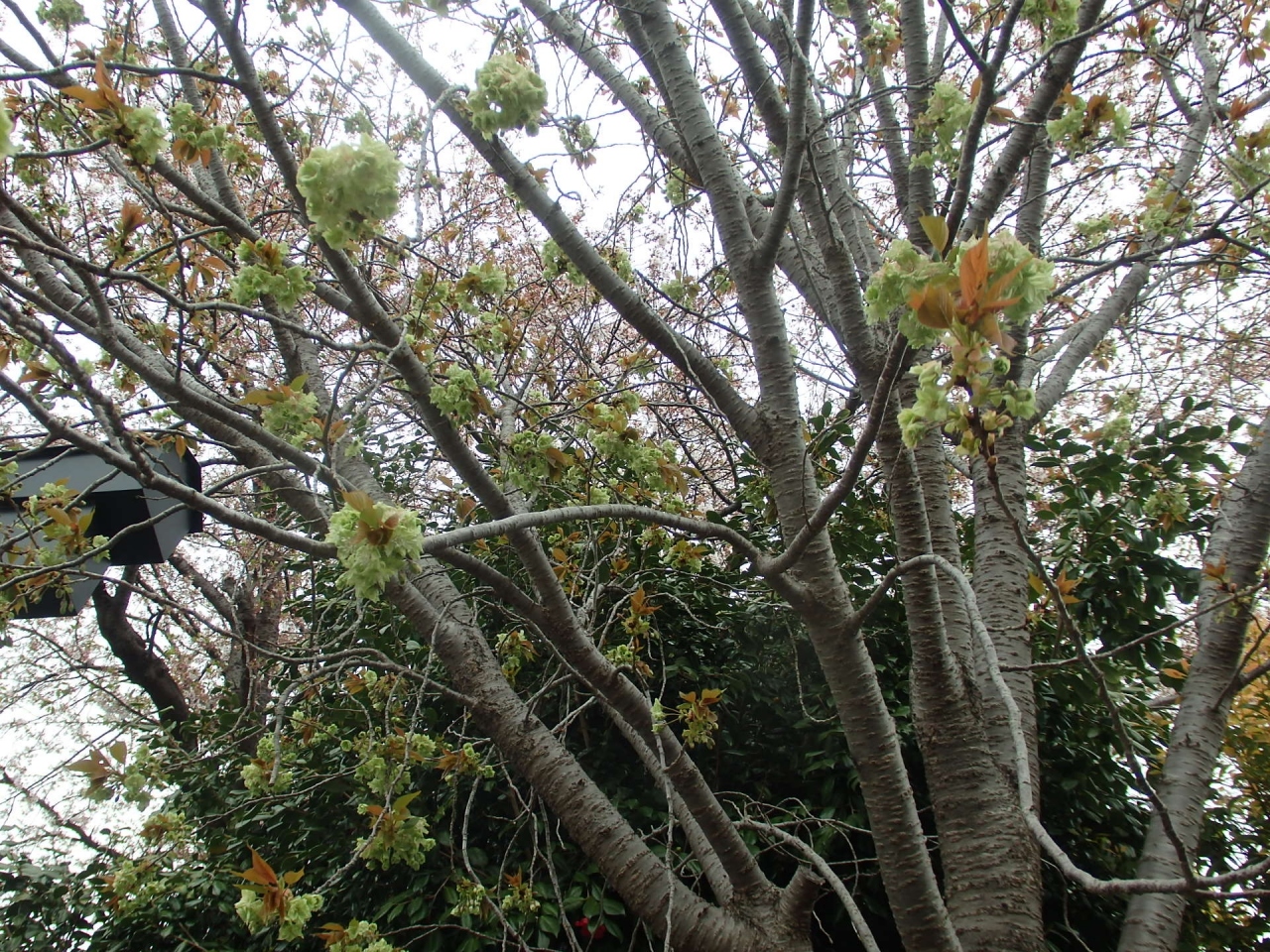 松陰神社は山口県萩市にもありますが、東京ではここ世田谷区にあります。1882年、安政の大獄で刑死した吉田松陰の門人たちが、墓の傍に松陰を祀る神社が建立されたのが始まりです。鳥居の右側に1本の御衣黄桜が植えられています。この桜は江戸時代、京都の仁和寺で栽培されたのが最初と言われており、薄緑または薄黄色の八重の花を咲かせます。花の最盛期を過ぎると、花の中心部が赤味を帯びてくる。似た花にウコンがありますが、ウコンには薄緑色の花は無い、または花弁の厚みがウコンの方が薄いといわれていますが違いは分かりにくいです。十数年前に、大阪造幣局の通り抜けで見たのが最初でしたが、それ以来御衣黄ファンになりました。ソメイヨシノほど鮮やかさはありませんが、地味な感じのところが気に入りました。ソメイヨシノの満開が過ぎると参拝客は減るのか、人も少なくゆっくり御衣黄を見ることが出来ました