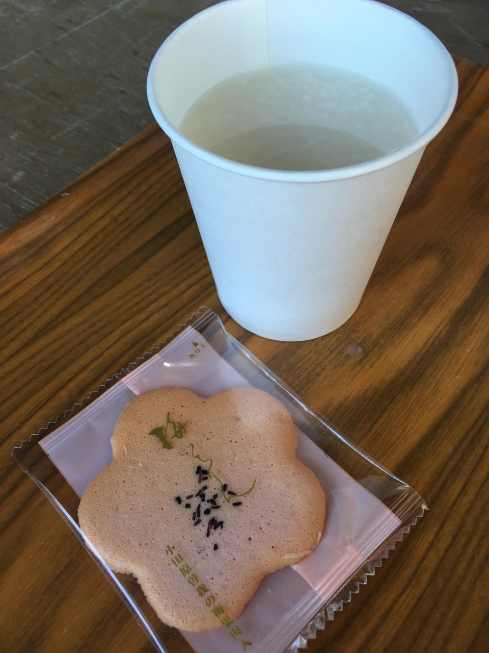 その奥の階段下にいくつか飲食スペースが広がり、茶屋で甘酒を買いました。