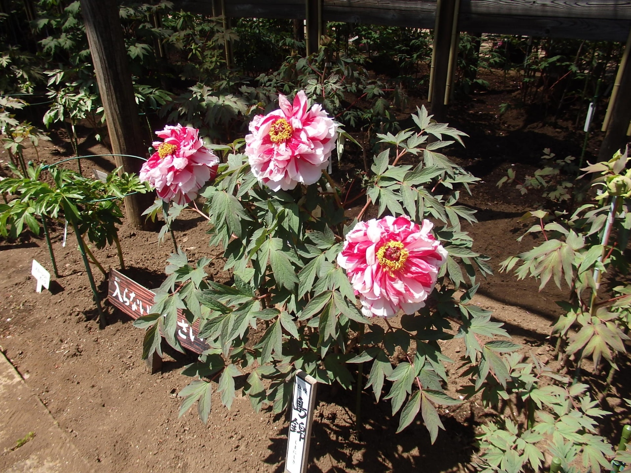 町田駅よりバスに乗り薬師池バス停で下車、薬師池公園を見学してあと、牡丹園に行きました。薬師池牡丹園内では赤、白、桃色、淡桃白色、淡桃色と赤との絞等種々の色の牡丹を見ることが出来ました。奈良の長谷寺で薄緑色と黄色のボタンをみたことがありますが、久しぶりに黄色の牡丹を見ました。長谷寺に比べ、こちらの方が種類は多いようですが、本数は圧倒的に長谷寺の方が多いようです。ボタンの種類は多すぎるので名前を覚える気がしません。合わせて園内ではこの時期に多くの種類の特殊な桜やシャクナゲを見ることが出来ます。牡丹の季節のみ入園料は必要ですが、花ファンに見逃せない公園です
