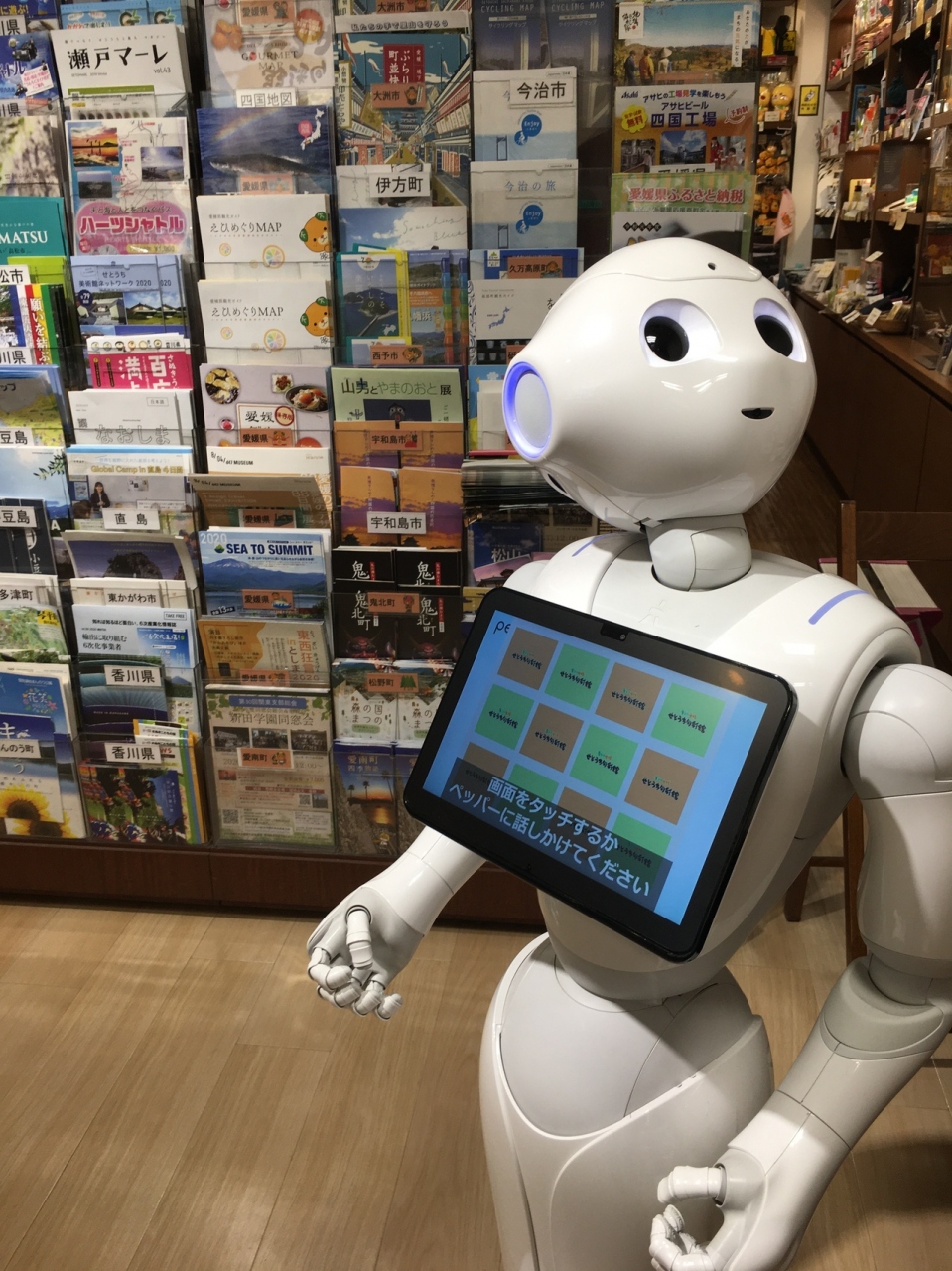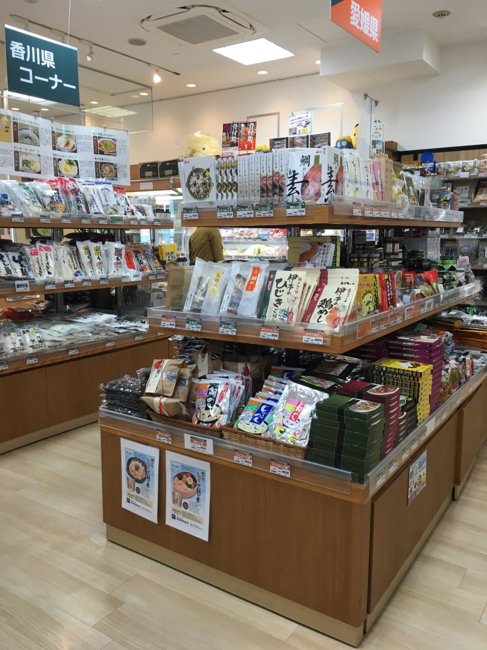 香川、愛媛のものがたくさんあり、香川のうどんがたくさん売っていました。魚関連のものも多く、伊予のひじきごはんを買いました。2月は食事処になっていて、観光案内所もあり、たくさんのパンフレットがあり AIロボットもいました。