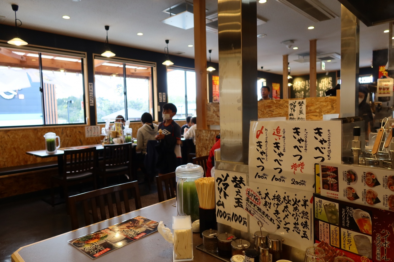 以前ブロンコビリー青葉台店があった松風台交差点の角にきゃべとんラーメン 横浜青葉台店はあります。広い駐車場があって駅からこの店に行くのは大変ですが、車で域には便利です。店内はカウンター席とテーブル席があります。