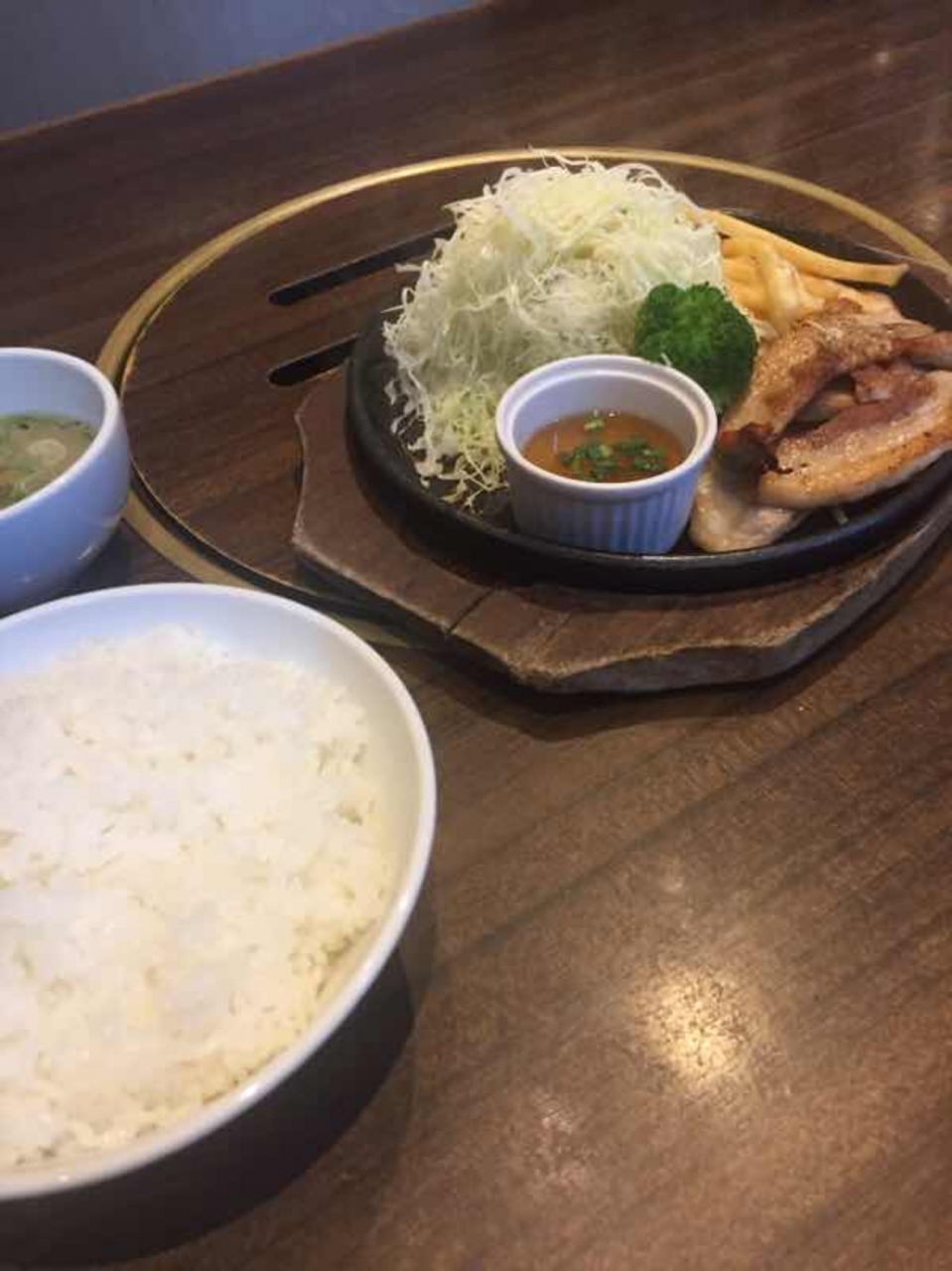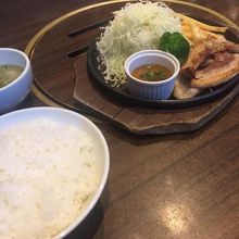 ランチタイムに訪問したところ、ハンバーグなどの定食があり、トンテキのような肉の定食を頼んだら、ボリュームが結構ありました。