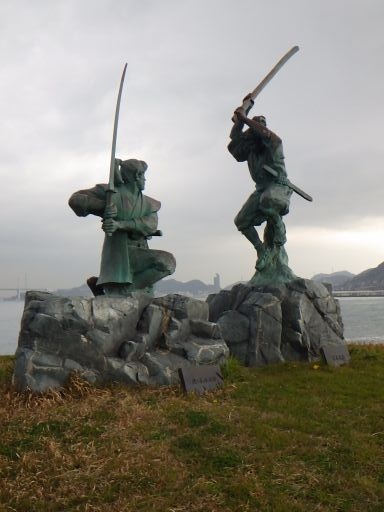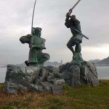 巌流島には武蔵と小次郎の像が、船着場から徒歩10分くらいの場所にある。