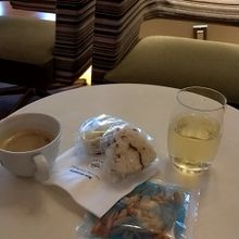 食べ物はほとんどなく、またドリンクも限られていてとてもさみしいラウンジ。