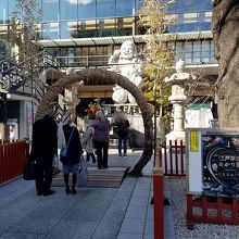 隨神門から入ってすぐ左手にあります。まるで大仏のように立派な台座の上に建っているので少し違和感を感じるほどでしたが石造りとしては日本一のだいこく様だそうです。大きな茅の輪もあって荘厳さが増しており、並んでいる人も多くてとても人気がありました。