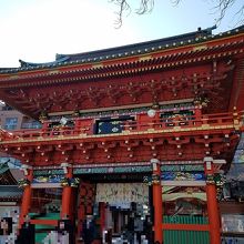 神田明神の正面の門で赤や金色の絢爛豪華さが日光東照宮みたいです。柱の上のほうには白虎や青龍の彫刻が、建物の二層目には繋馬の彫刻があるので、ただくぐるだけでなく、通行の邪魔にならない所で立ち止まって是非見上げてみて下さい。