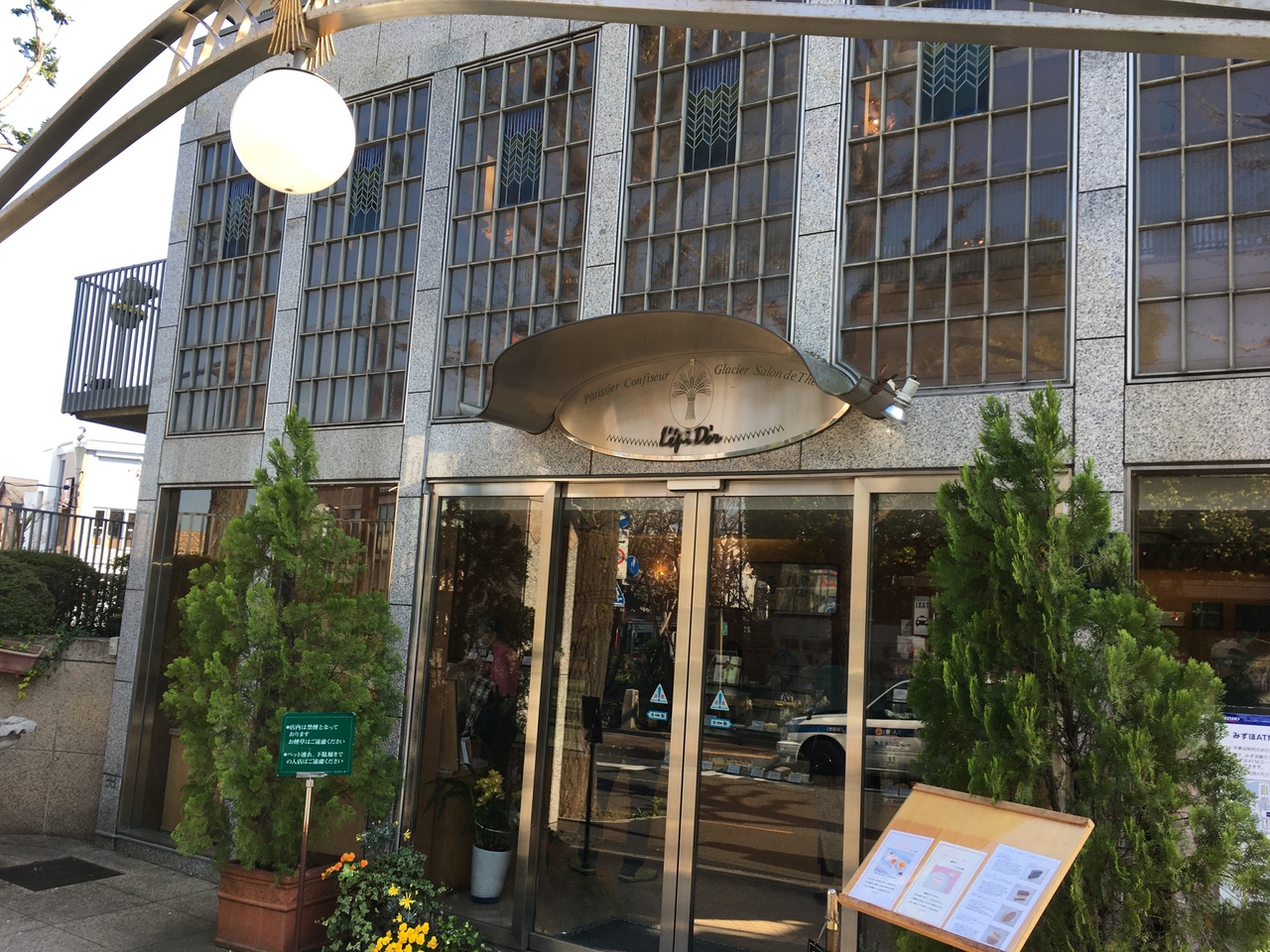 田園調布駅の顔ともいえる可愛らしい駅舎は、現在は単なる門というか飾り。その門正面に伸びる銀杏並木の入り口にあるのが、洋菓子店レピドール。1階は持ち帰り用の商品が並び、2階はカフェになっている。