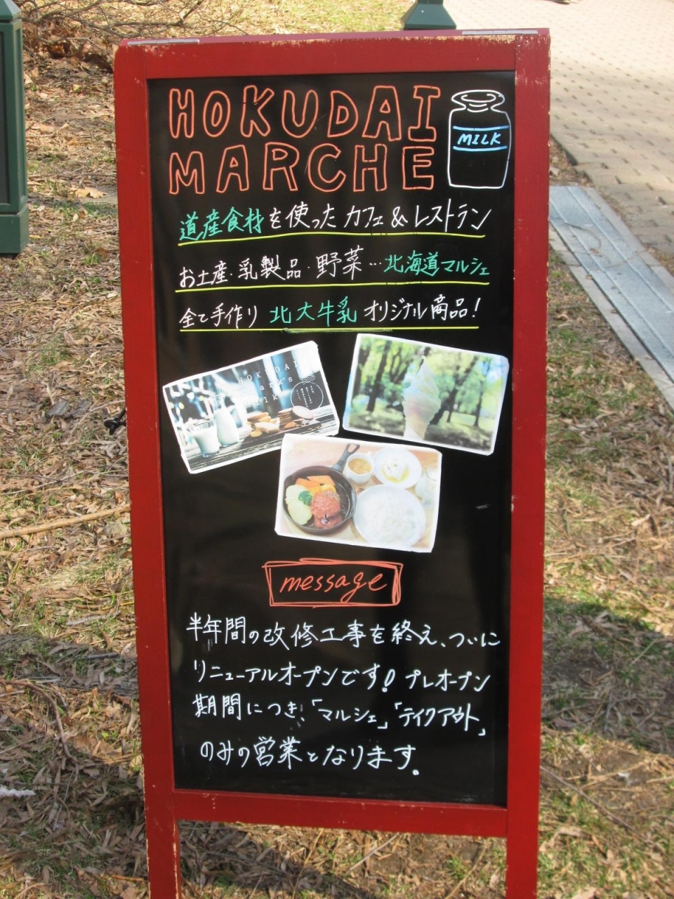 内部もリニューアルし落着いた空間となっていましたが、当面はプレオープン期間として食事の提供はなく、北大牛乳やクッキー、ソフトクリームなどテイクアウトのみでした。