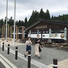 峠の釜めしがサービスエリアで楽しめます。施設内では昔の信越線で使っていたであろうディーゼル電車の車両が客席として使用されていて、駅弁時代の峠の釜めしをイメージさせてくれました。スターバックスコーヒーから地物の野菜売り場まで、結構楽しませてくれます。