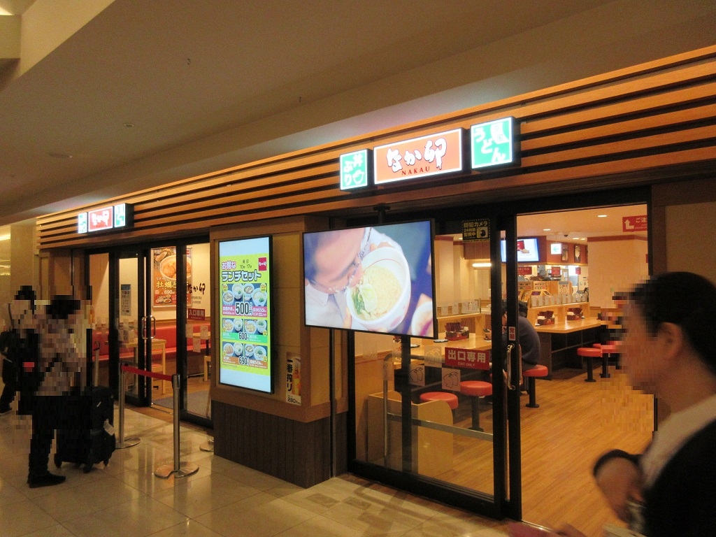 仕事で関西空港を利用する機会があり、関空駅から歩行者デッキを渡りエアロプラザの3階にある【なか卯】に行きました。昼の時間でしたが、意外と空いていました。定番の饂飩を注文し、15分程度で簡単に食事を済ませることが出来ました。スープも美味しくて、飲み干してしまいました。