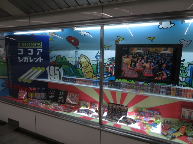 2020年の3月末に乗りました。これが御堂筋線かと思うほどすいててガラガラでした。コロナの影響はすごかったです。梅田駅の展示ブースに、とても懐かしいオリオン製菓のお菓子の展示がありました。なかなか凝った展示になっていて、ビリケンさんとのコラボも良かったです。
