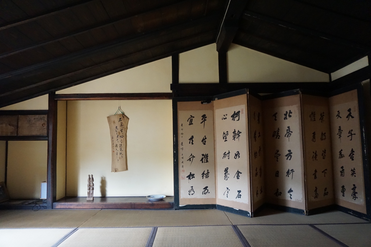 金子屋は、宿根木の公開民家のひとつで、船大工職人の家。宿根木が大いに賑わった19世紀前半の建物です。土地が限られた宿根木ですから、ここも広さ的には限界があるのは否めませんが、それでも、板壁の総二階造りは空間をめいっぱいに活用したもの。二階の部屋もそれなりの静けさを感じます。