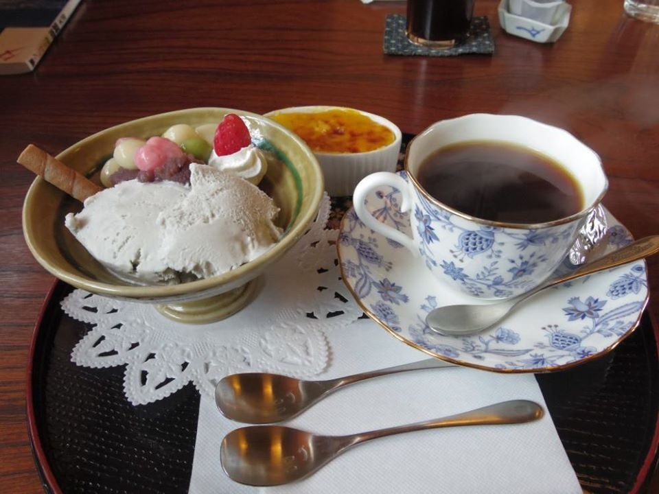 豆腐白玉とゴマアイス、スイートポテトを2人でシェア。
