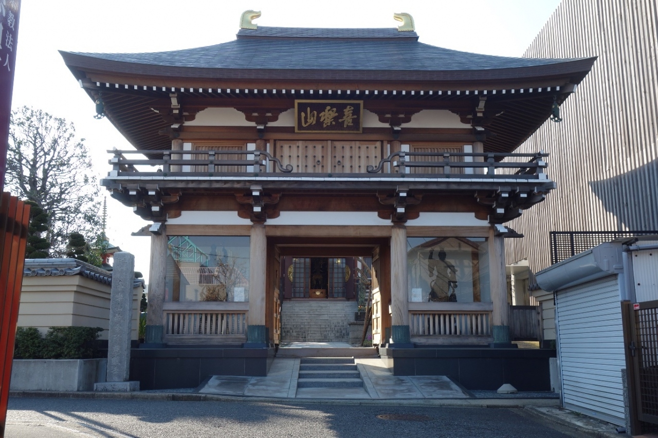 世田谷あたりのエリアを散策中こちらの場所を訪れました。二子玉川商店街を北上し治大夫橋を渡ったあたりに位置する真言宗の寺院で山号が喜楽山、院号は教令院です。高さのある立派な山門が印象に残る素晴らしい寺院でした。