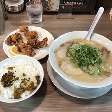 ごんらーめん(710円)、唐揚げ4ヶ+ごはんセット(260円)。