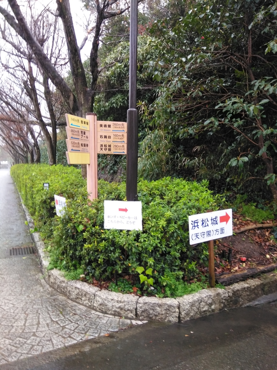 駐車場は浜松城公園の駐車場があります。50台位で無料でした。市役所の隣です。