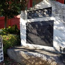 御神殿に向かって右側にあります。江戸時代中期の国学者、荷田春満(かだのあずままろ)が江戸で初めて国学の教場を開いたのが神田神社の社家だったゆかりでここに碑が建てられました。碑文は割と読みやすく、有名な本居宣長の名前も出てくるので是非読んでみて下さい。