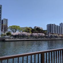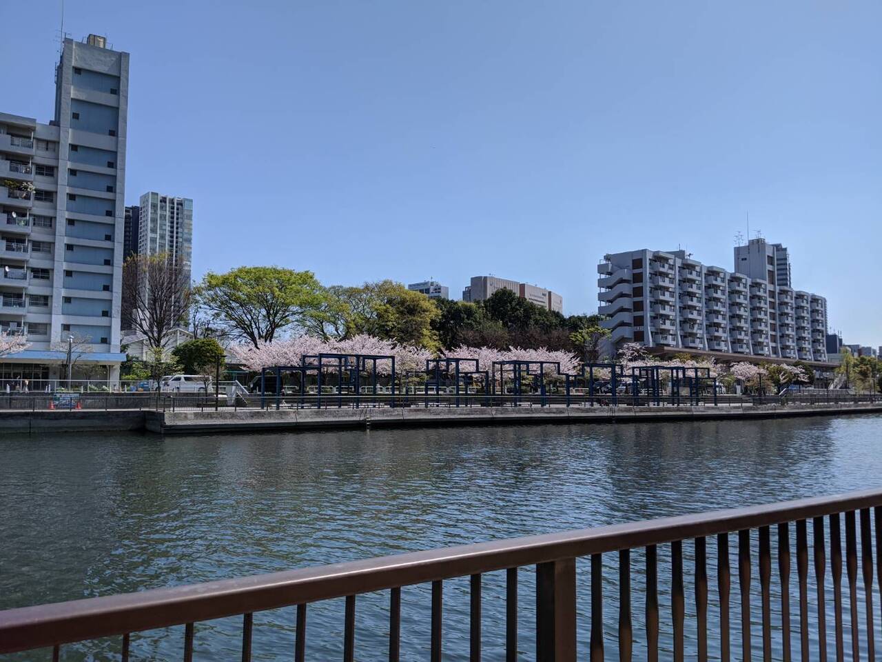 JR品川駅の港南口から歩いて10分程の高浜運河沿いにありました。運河沿いは遊歩道が整備されているので散策を楽しむことができます。また、天王洲などの街並みを見ながら散策することができるので、おすすめのスポットです。
