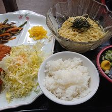 所沢駅から徒歩数分。ブロペ通りから路地に入る飲食街のようなところにあるお店。夜は完全な地元の飲み屋。昼からでも飲んでいるお客さんがいてそそられましたが、車だったので諦める。ここだけ昭和の雰囲気。やや入るのに勇気がいるかもしれませんが、女性の一人客も。所沢だけあってライオンズのポスターがどーんと貼ってある。お水が真鍮のような器で出てくるところも雰囲気をかもし出す。日替りサービスのセットから、エビステーキカツと 麺(ラーメン、うどん、そば、ソーメン、ざる中華から選択)をオーダー。かつは揚げたてサクサクで美味。麺はツルツルシコシコでしたご、少し汁が濃い目。ボリューム満点のランチ。今度は夜に行きたい。