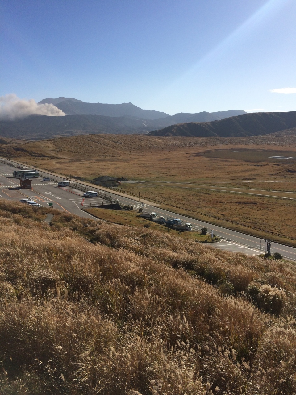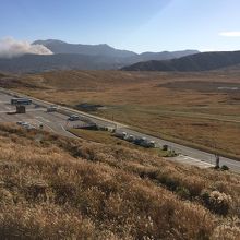 道沿いにあって、無料で車を停める事ができ、草千里が一望できます。整備されてつくられたウッドデッキの展望台で、ありがたいです。阿蘇山が良く見えました。遠くの方で、噴火の煙も見る事ができました。お天気で良かったです