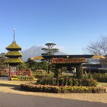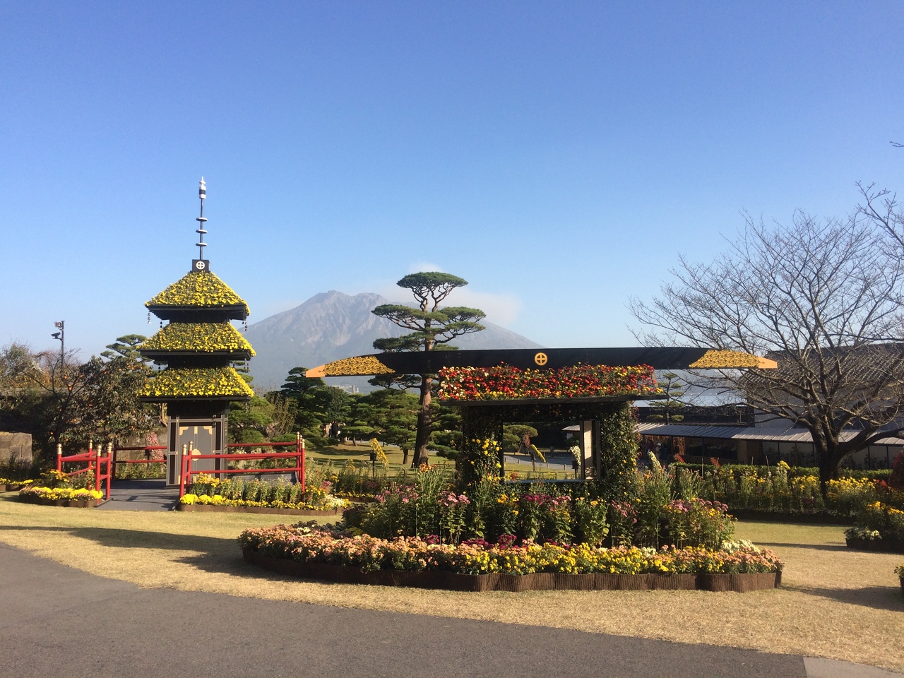 桜島クルーズで外からも仙巌園が見えましたが、今度は中から桜島ビューポイントを見ると、本当に桜島がどーんと見えました。世界遺産だけあって手入れがされた庭で、他にも装飾品が飾られているので、まるで1枚の絵のようでした。