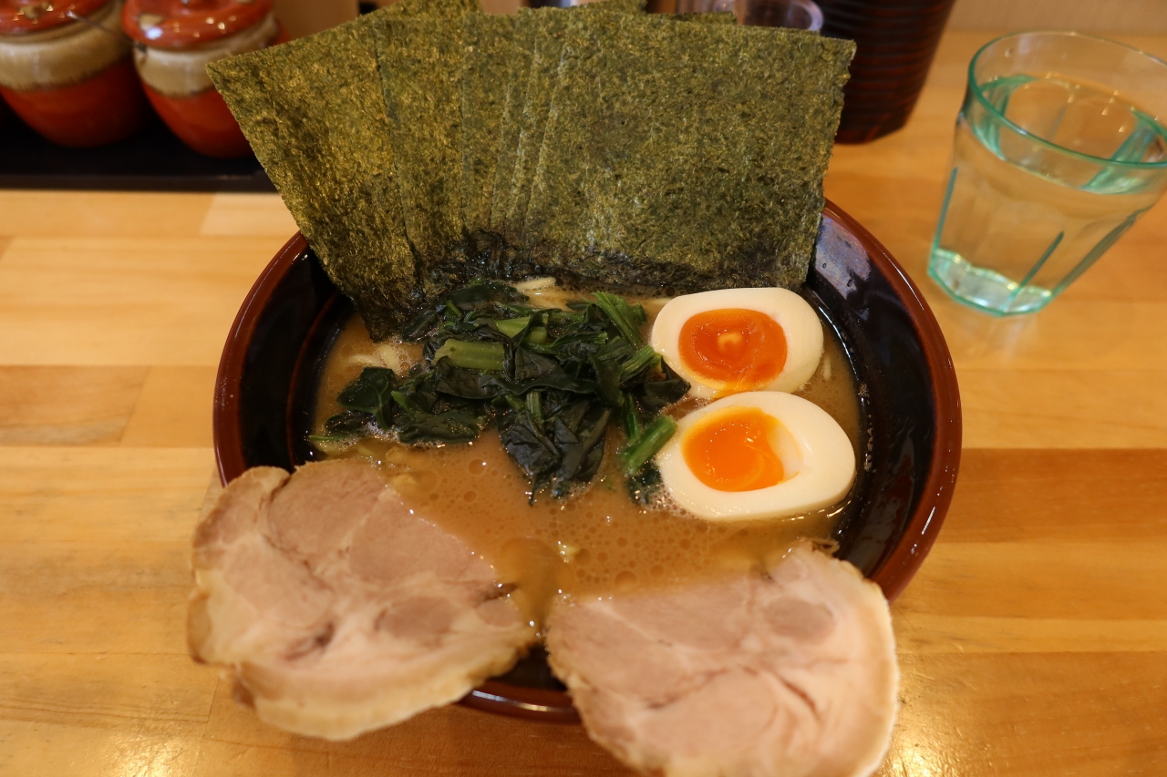 青葉台駅バスターミナルから青葉台郵便局の左側の脇道を直進した突き当りに横浜ラーメン 北村家はあります。店内はL字型のカウンター席のみ。メニューはラーメンとご飯物だけ。頂いたのは青葉盛ラーメン。チャーシュー、海苔、半熟味付卵、ほうれん草が乗ったお得なラーメン900円。味は横浜ラーメンと言うだけあり、いわゆる家系の味でくどいかと思いましたが、食べてみるとくどくなく殆どのスープを平らげてしまう程美味しい味でした。青葉台で一番美味しいかもしれません。