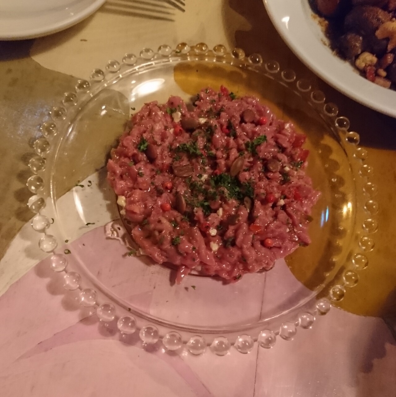 2軒目にて利用いたしました。お通しのパンから始まり、羊肉、マッシュルームとともに白ワインのボトルを頂きました。満腹の状態でお酒メインのつもりでしたが、食事がおいしかったので、次回は1軒目として利用したいです。