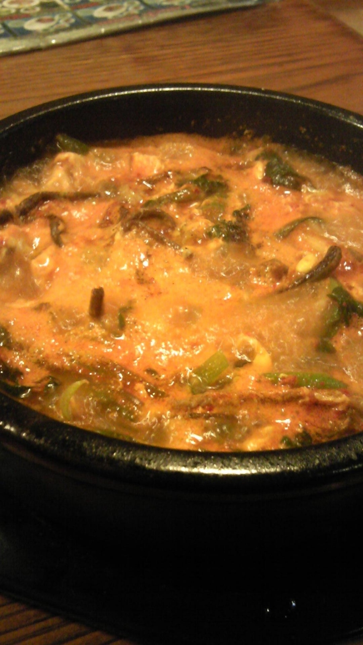激辛のユッケジャン、口の中がやけどするほど熱く、辛さは本格的でした。