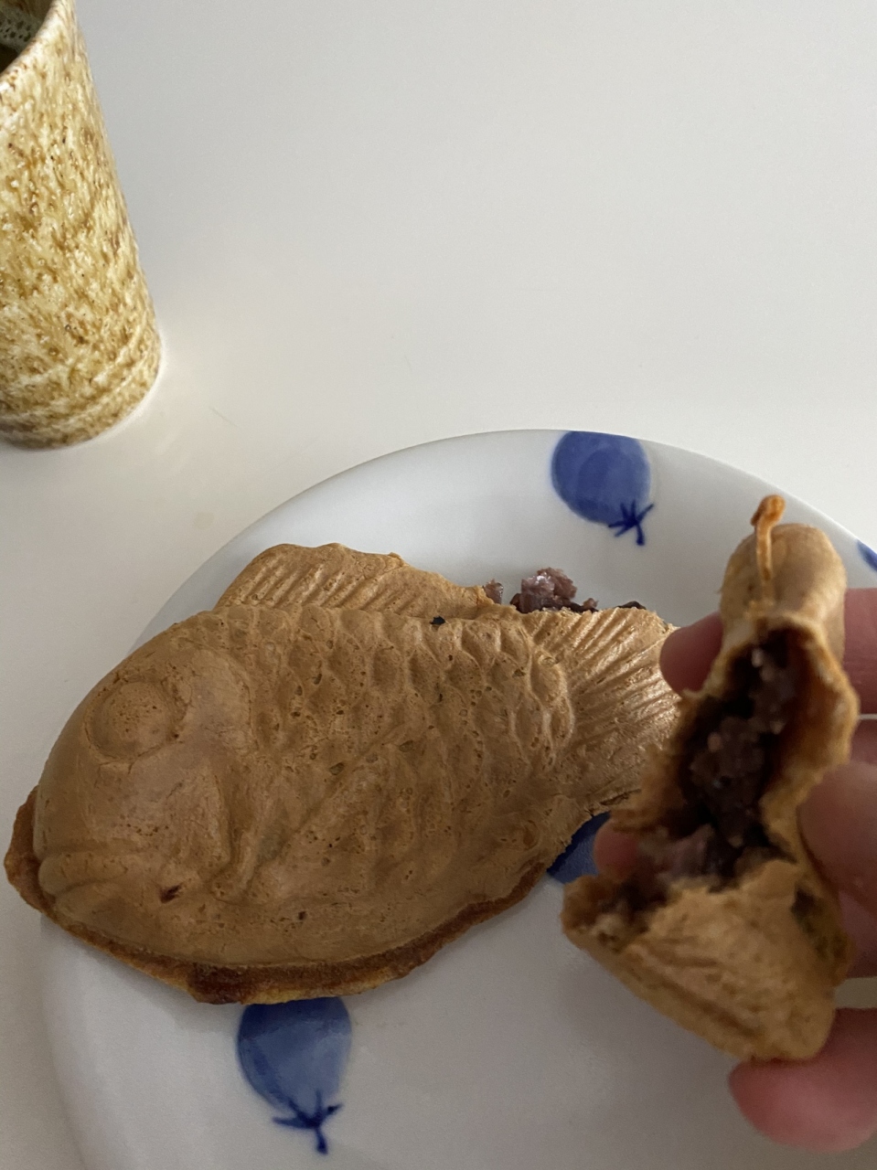 皮はモチッとした感じで、餡子は頭からシッポまでいっぱい入っています。餡子の甘さも甘すぎずちょうどいいです。黒あん、白あん、カスタードクリーム、桜あん、2色の種類があります。