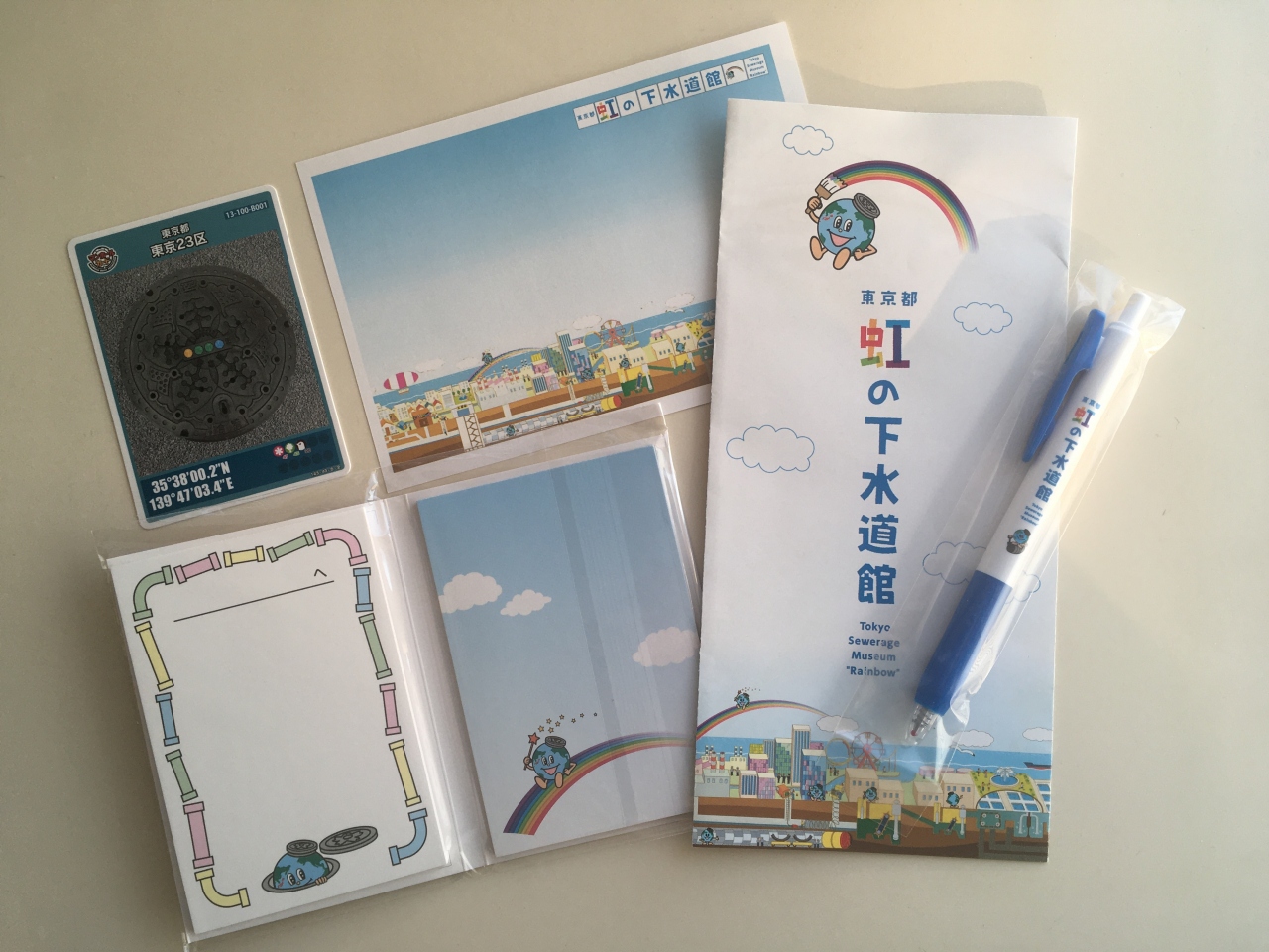 帰りに入館記念グッズとアンケート記載で、東京23区のマンホールカード、ポストイット、ボールペンをいただきました。