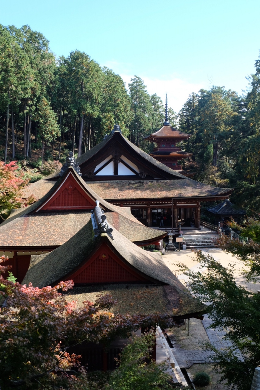 滋賀県近江八幡市にある、西国三十三カ所第31番札所となっているお寺です。車で行ったので山の中腹にある駐車場に停めてから行きましたが、そこから本堂に行くのでもなかなか急な階段が続きました。一番下から登ると808段の階段があるそうです。森の中に本堂や朱色の三重塔が佇んでいる風景はとてもきれいで、上からは琵琶湖も見えました。11月初旬に行ったので紅葉はまだ早かったですが、紅葉もあったので時期になればとてもきれいだと思います。
