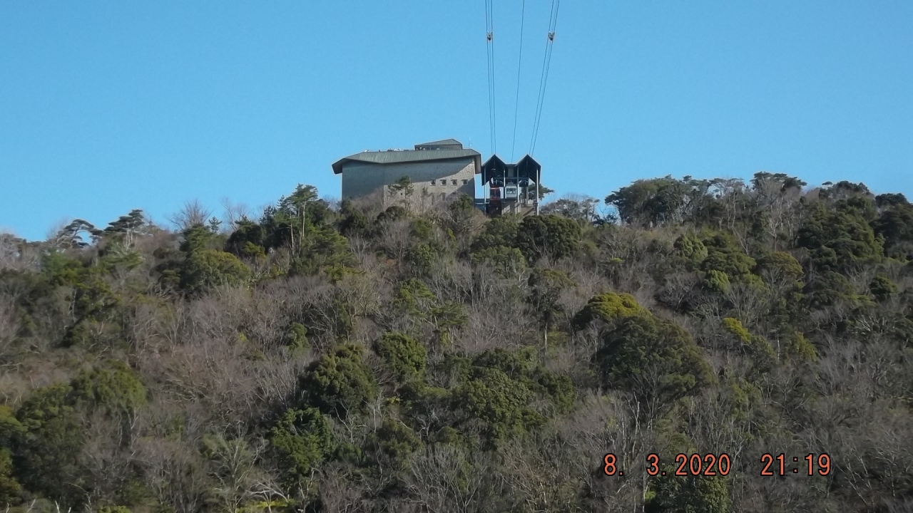 標高差はありませんが山頂からの眺めはいいです。往復840円/大人です。駐車場が同じくらいしますので山麓駅近くに宿泊の方はホテルに車を置いて歩いて行ってください。ロープウエイ利用者は駐車場無料にしてほしいです。