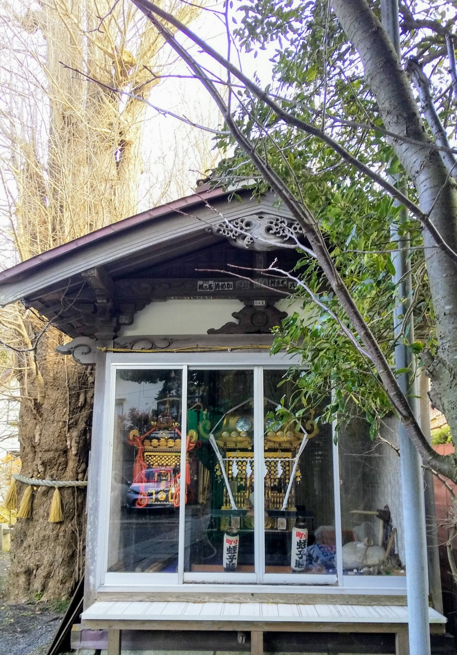 境内はとても静かで、立派なご神木と 収蔵庫に保存されてる御神輿を窓越しに見ることができました。