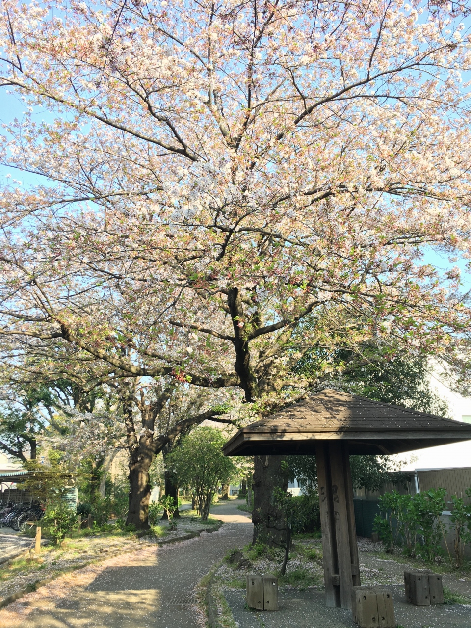 往時を物語る遺構は残っていませんが、桜の老木が満開の花を咲かせていました