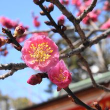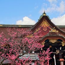 拝殿を「飛梅」が彩り美しい景観です。